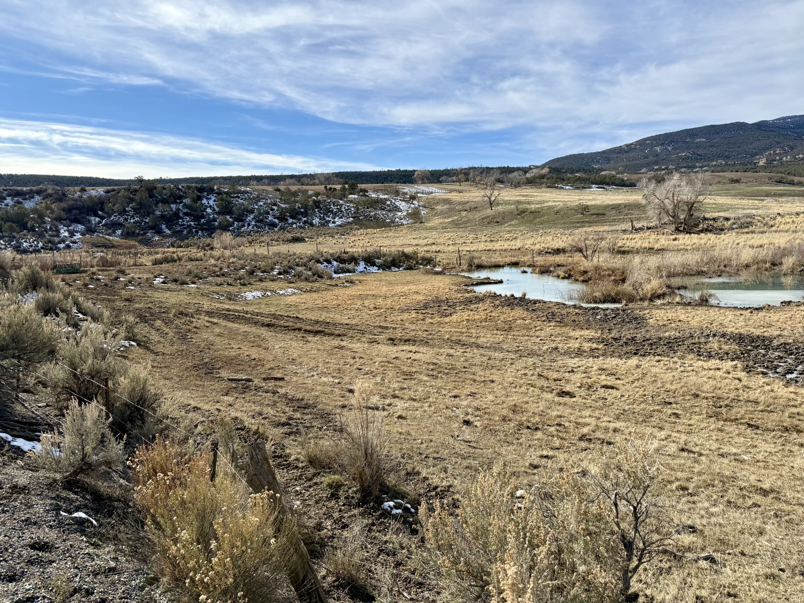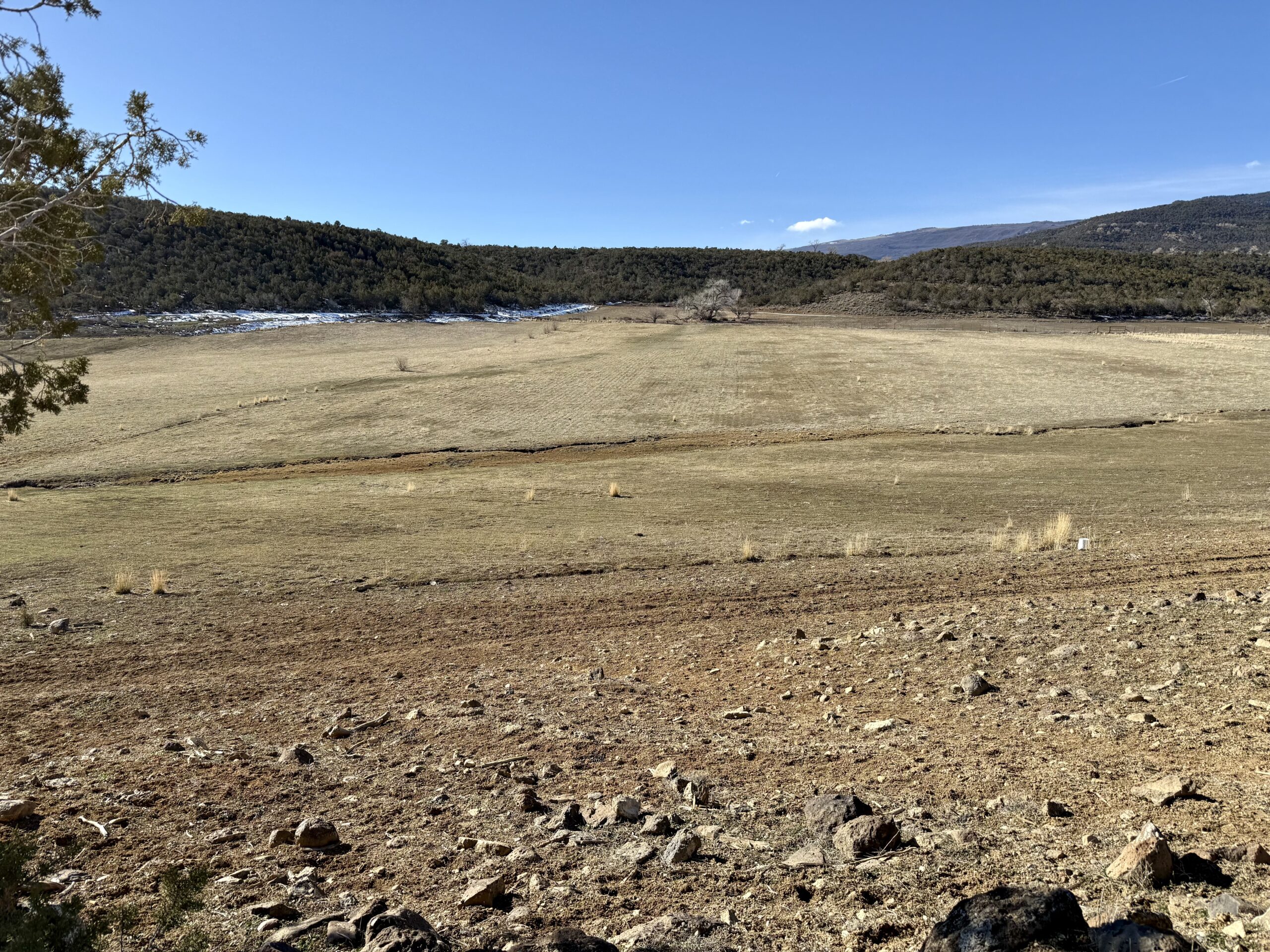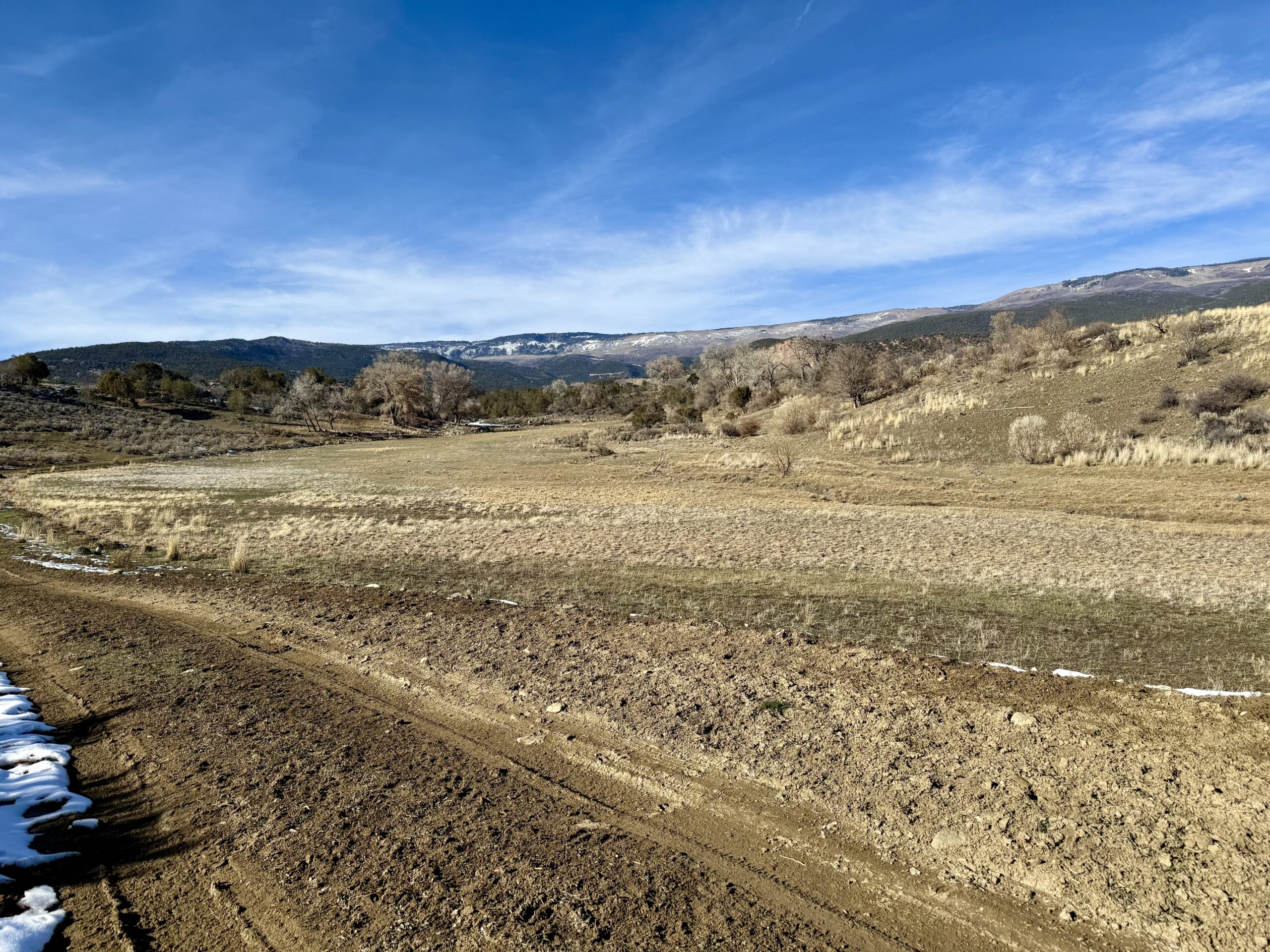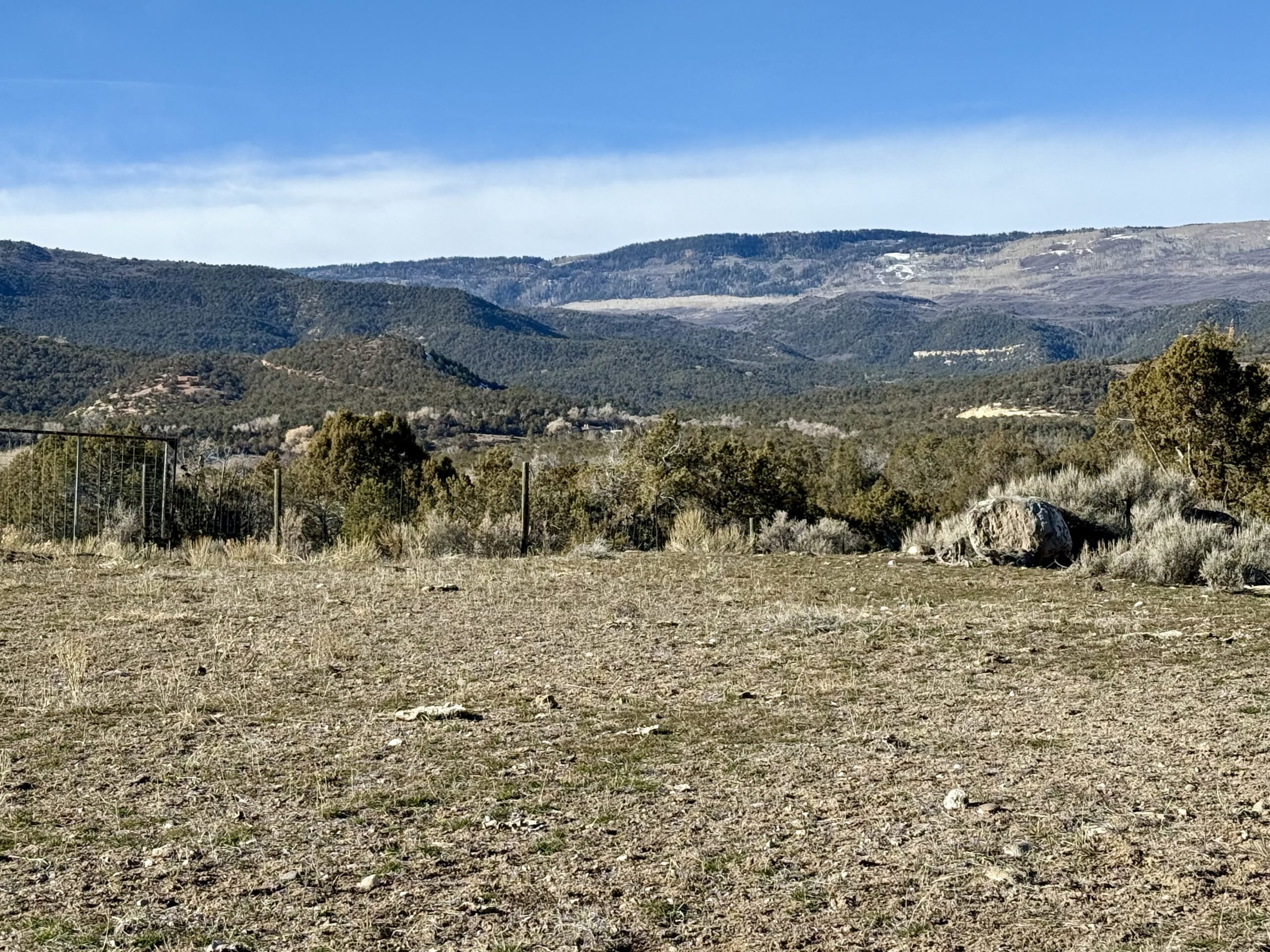 Beautiful 220± acres of diverse terrain with mesa benches, irrigated pastures, dryland grazing, meadows, piñon pine, cedar, cottonwoods, and enjoy Dirty George Creek as it runs through the ranch for ¼ mile or so. Approximately 90± acres are irrigated and currently in pasture.