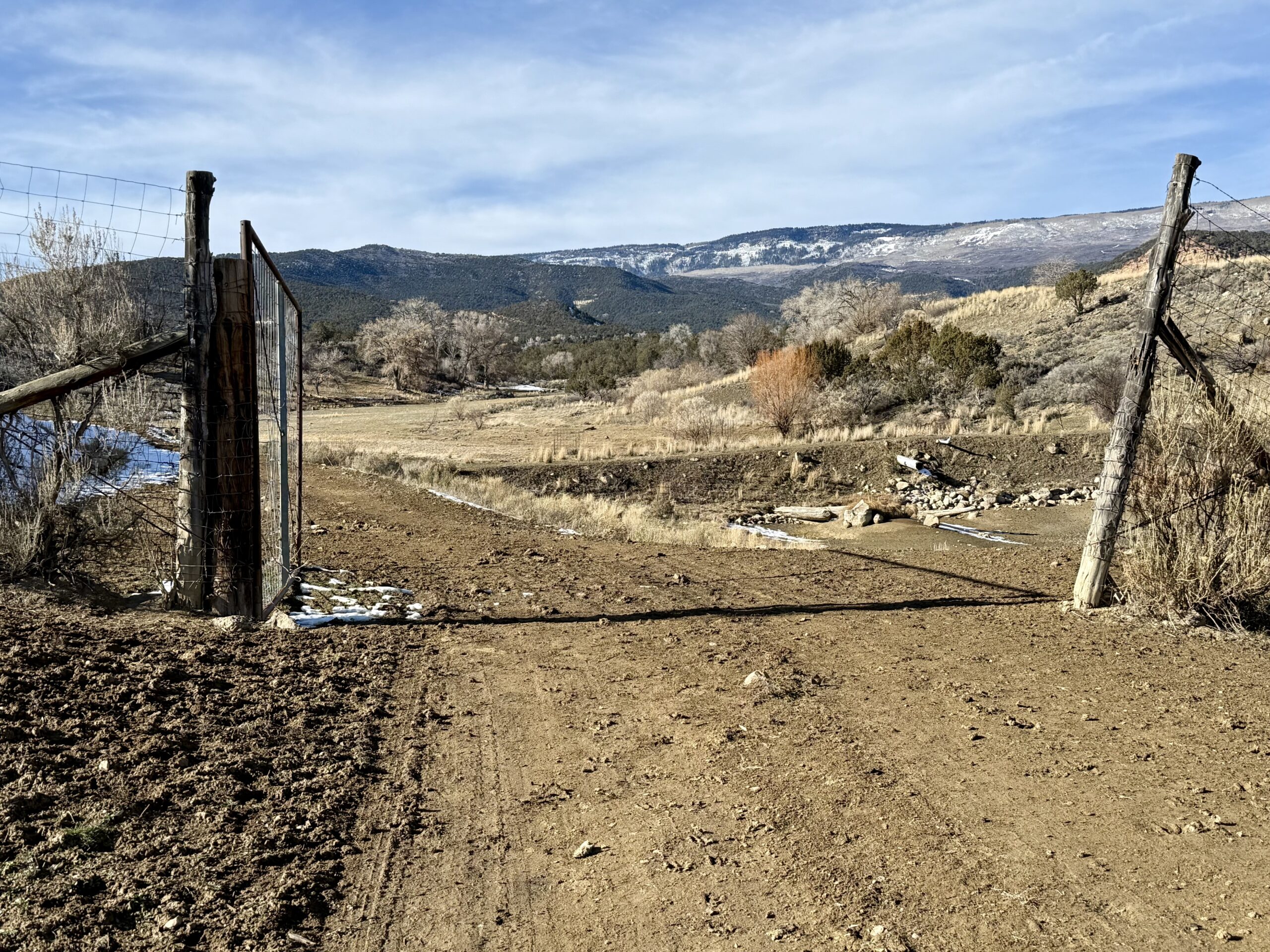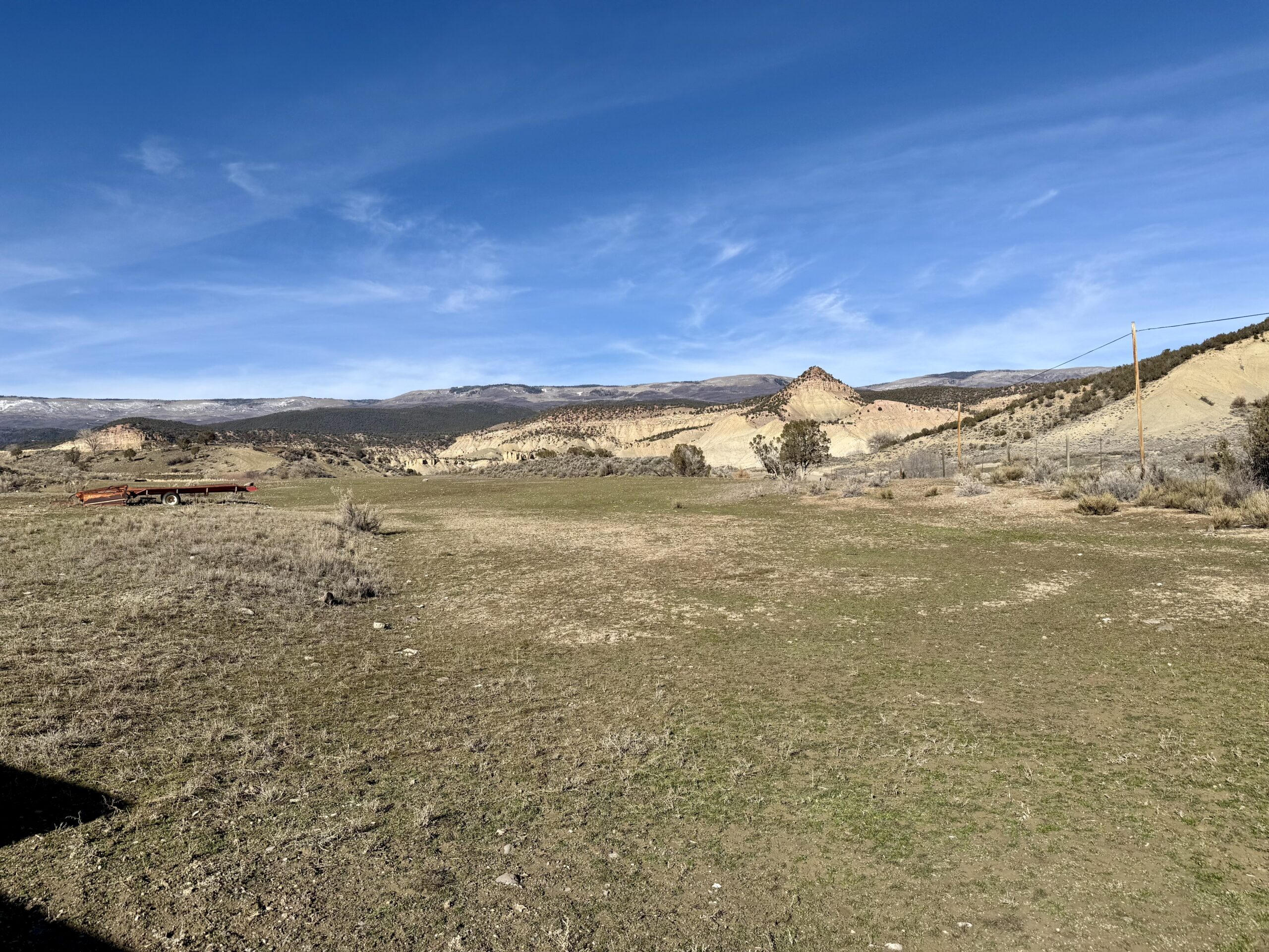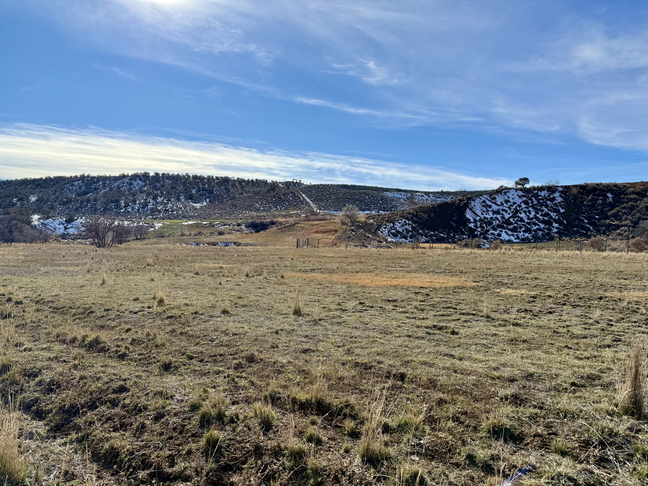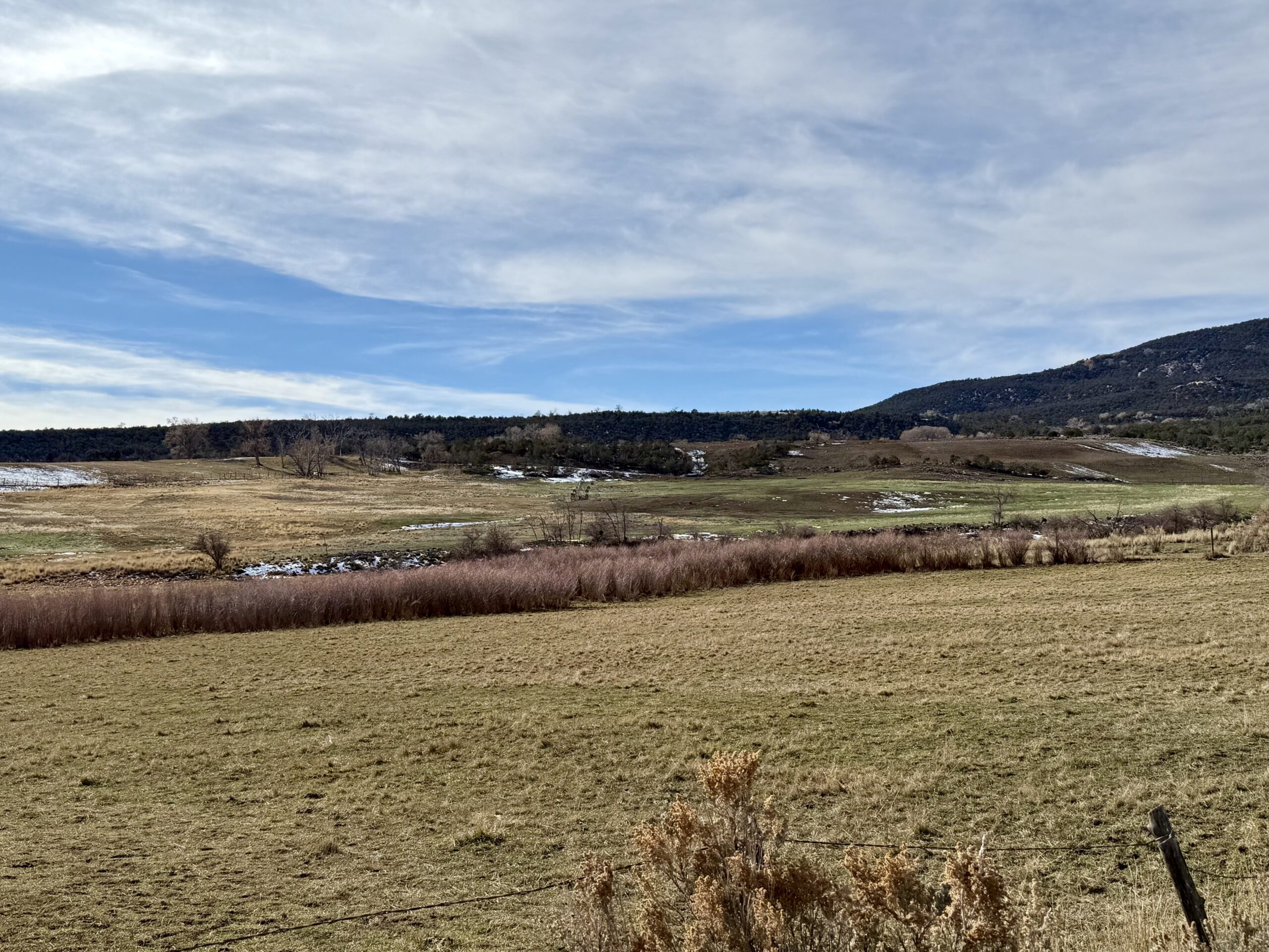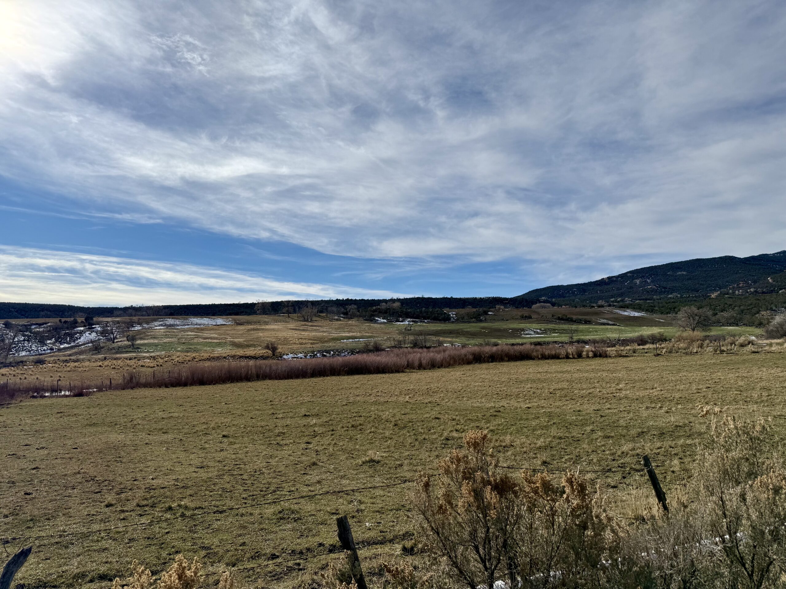 Beautiful 220± acres of diverse terrain with mesa benches, irrigated pastures, dryland grazing, meadows, piñon pine, cedar, cottonwoods, and enjoy Dirty George Creek as it runs through the ranch for ¼ mile or so. Approximately 90± acres are irrigated and currently in pasture.
