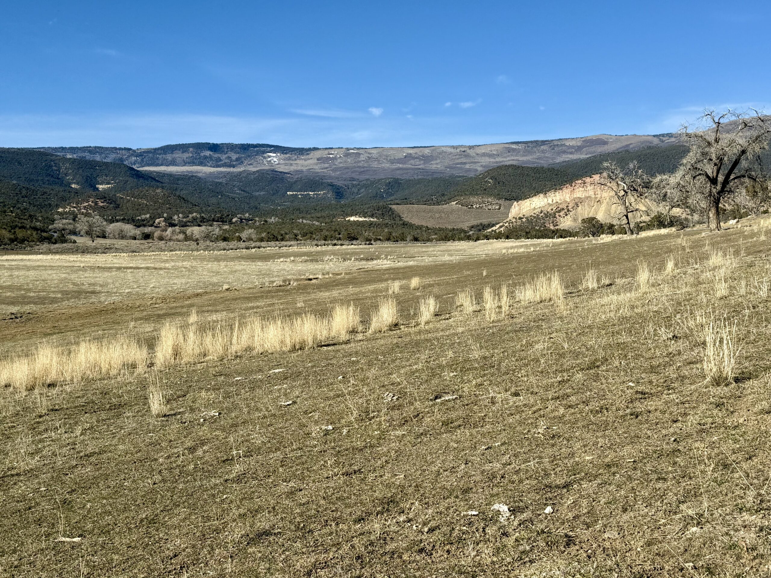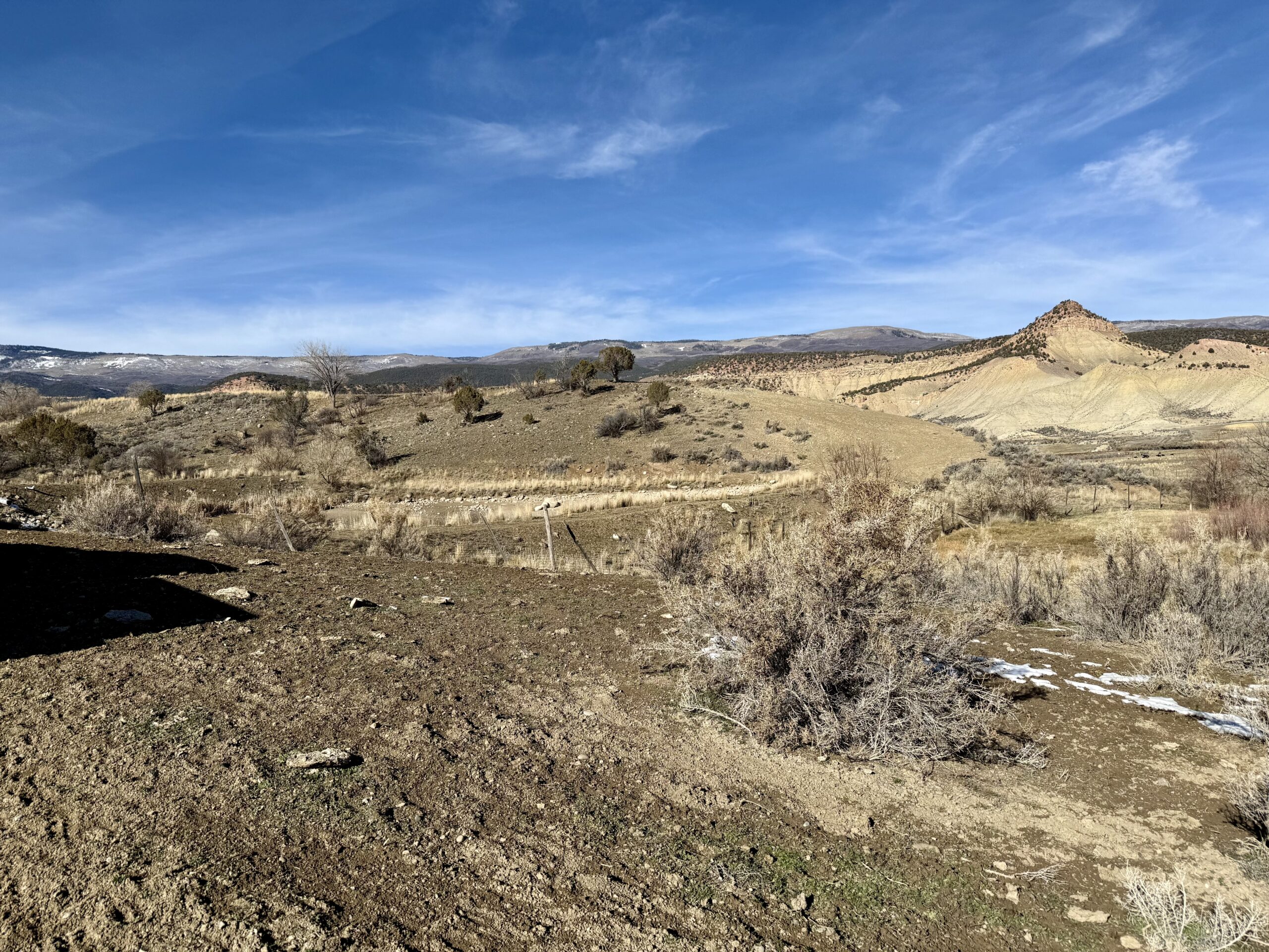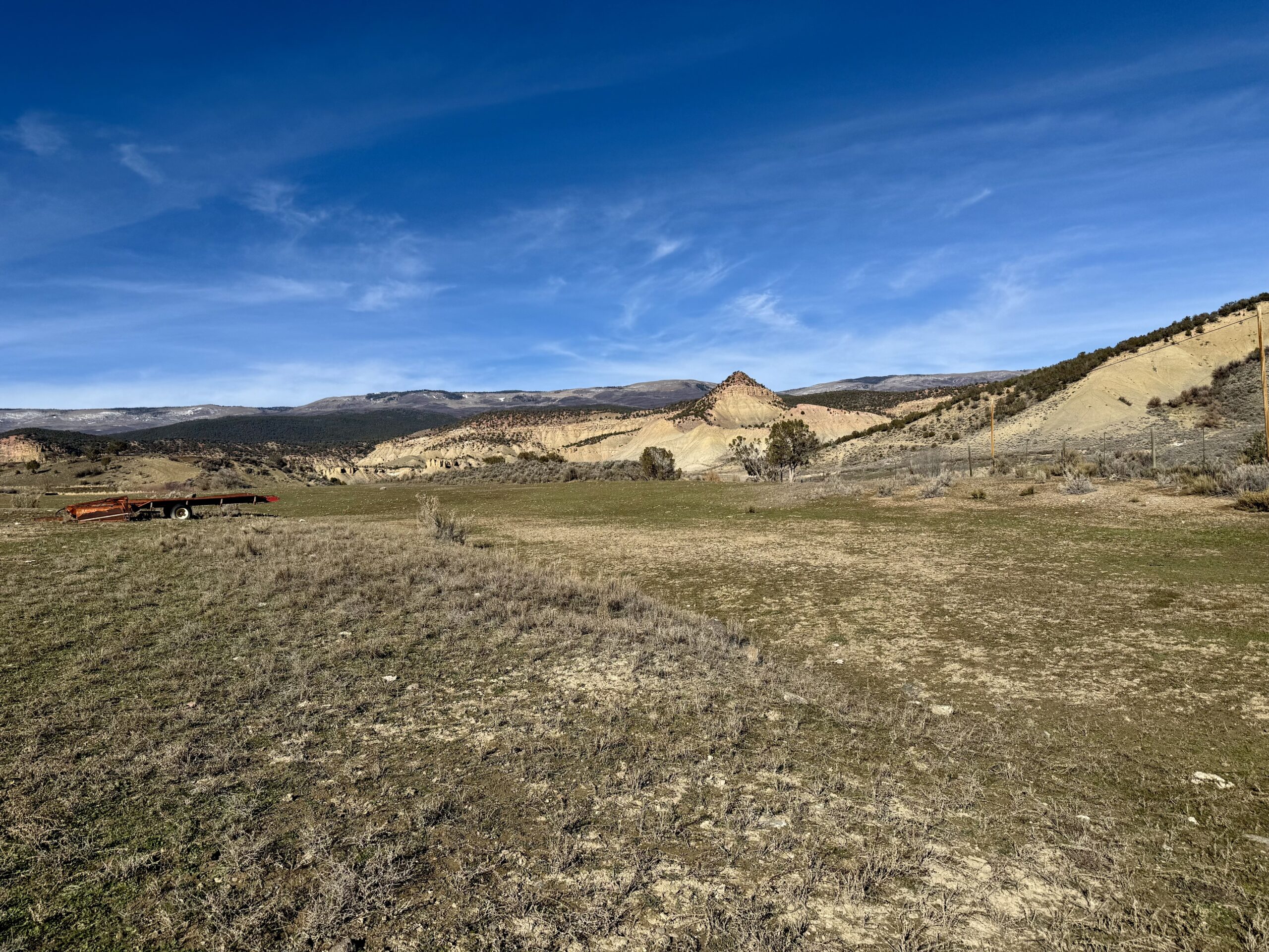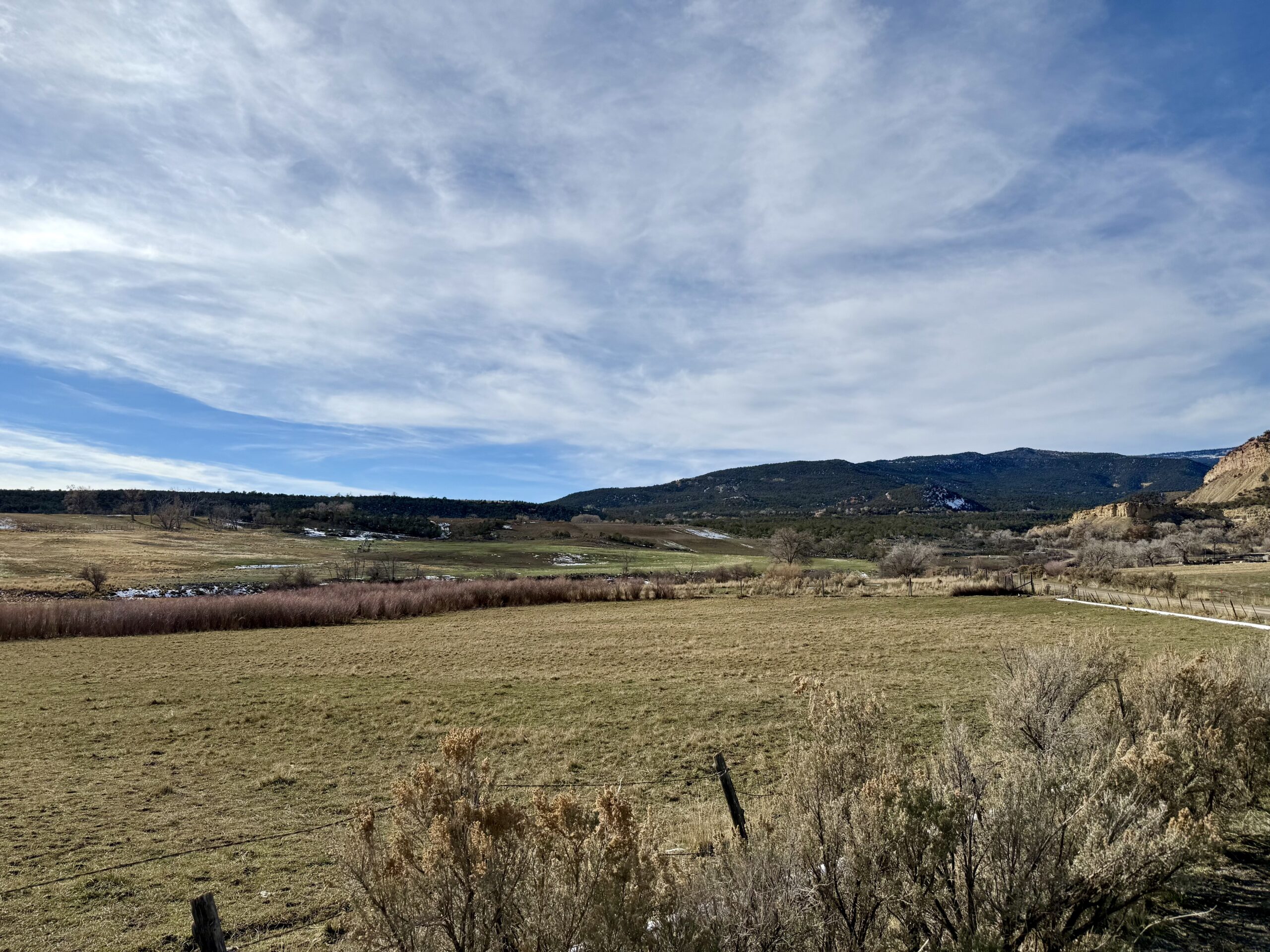 Beautiful 220± acres of diverse terrain with mesa benches, irrigated pastures, dryland grazing, meadows, piñon pine, cedar, cottonwoods, and enjoy Dirty George Creek as it runs through the ranch for ¼ mile or so. Approximately 90± acres are irrigated and currently in pasture.