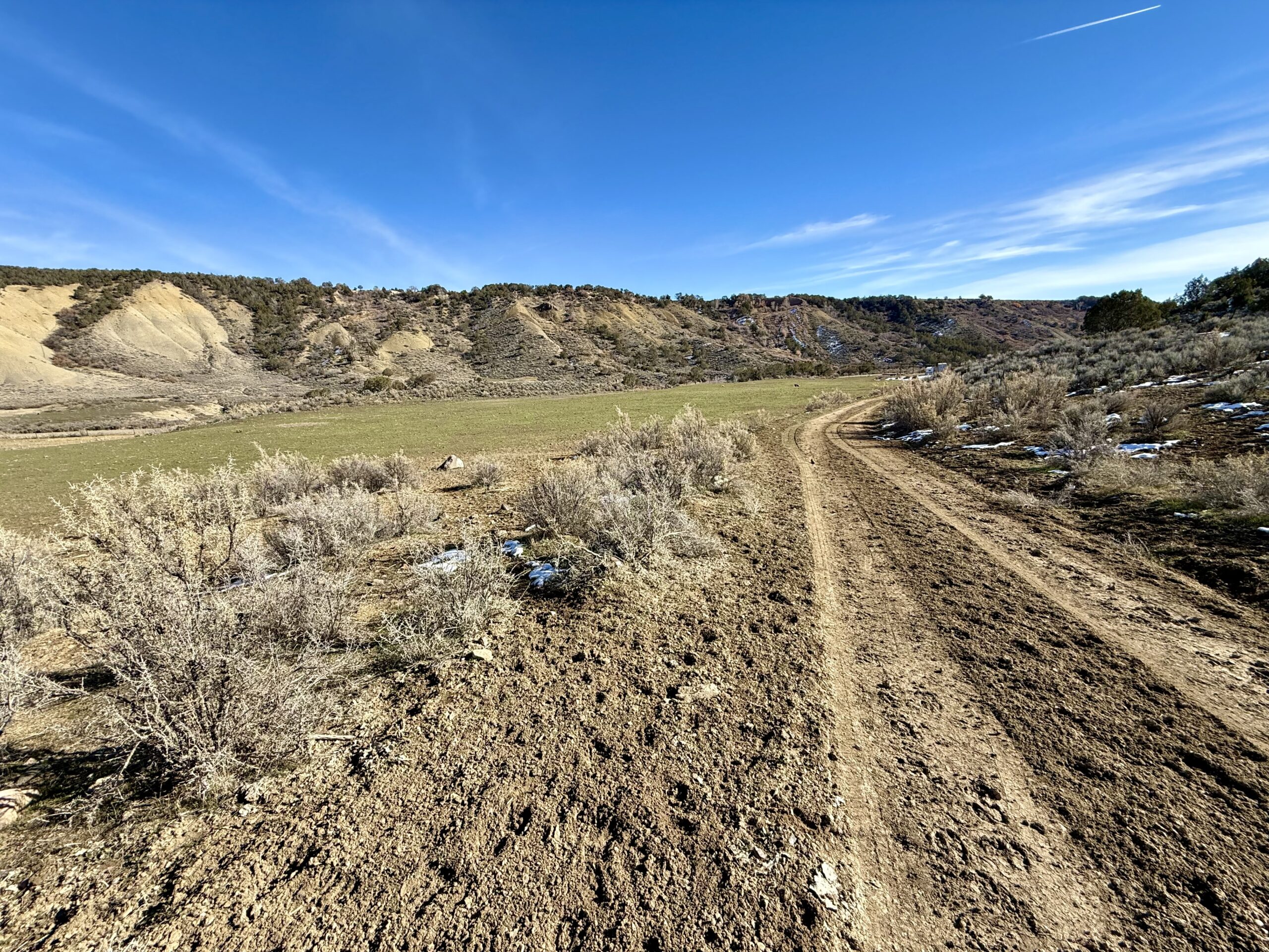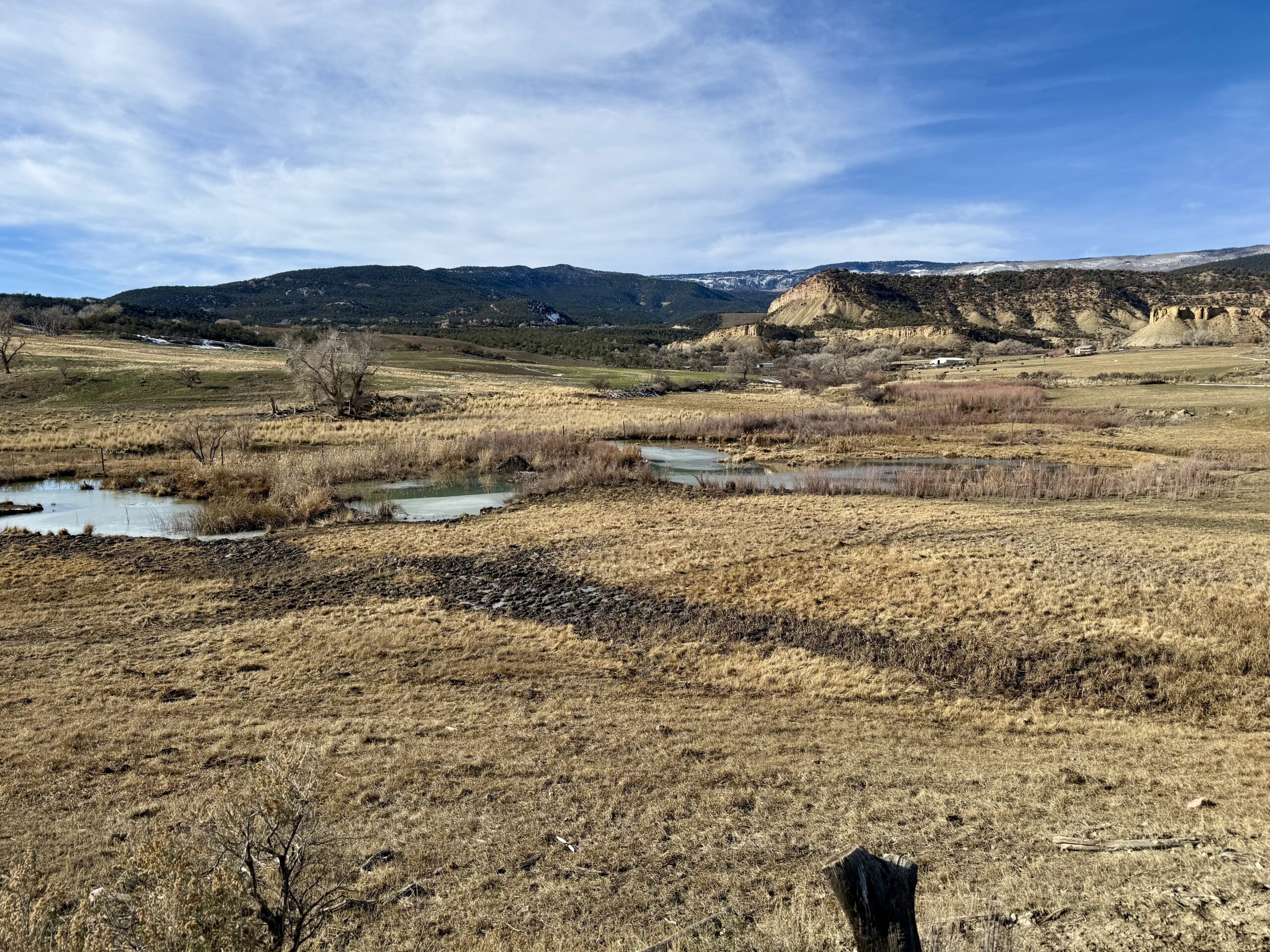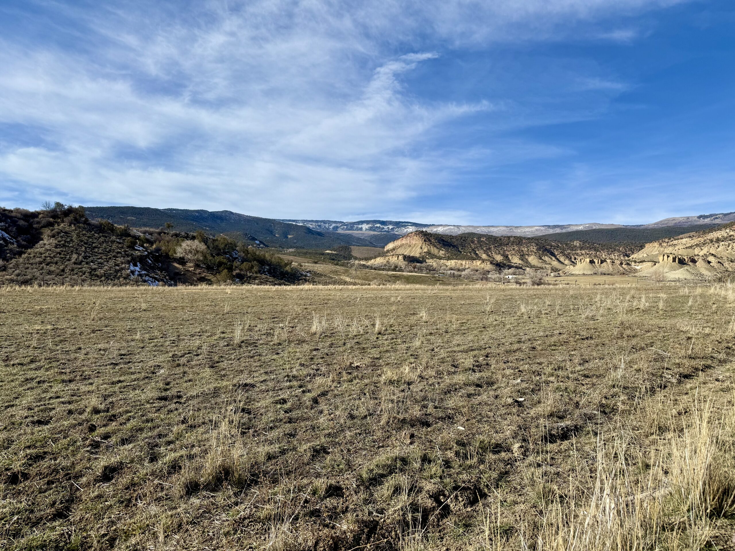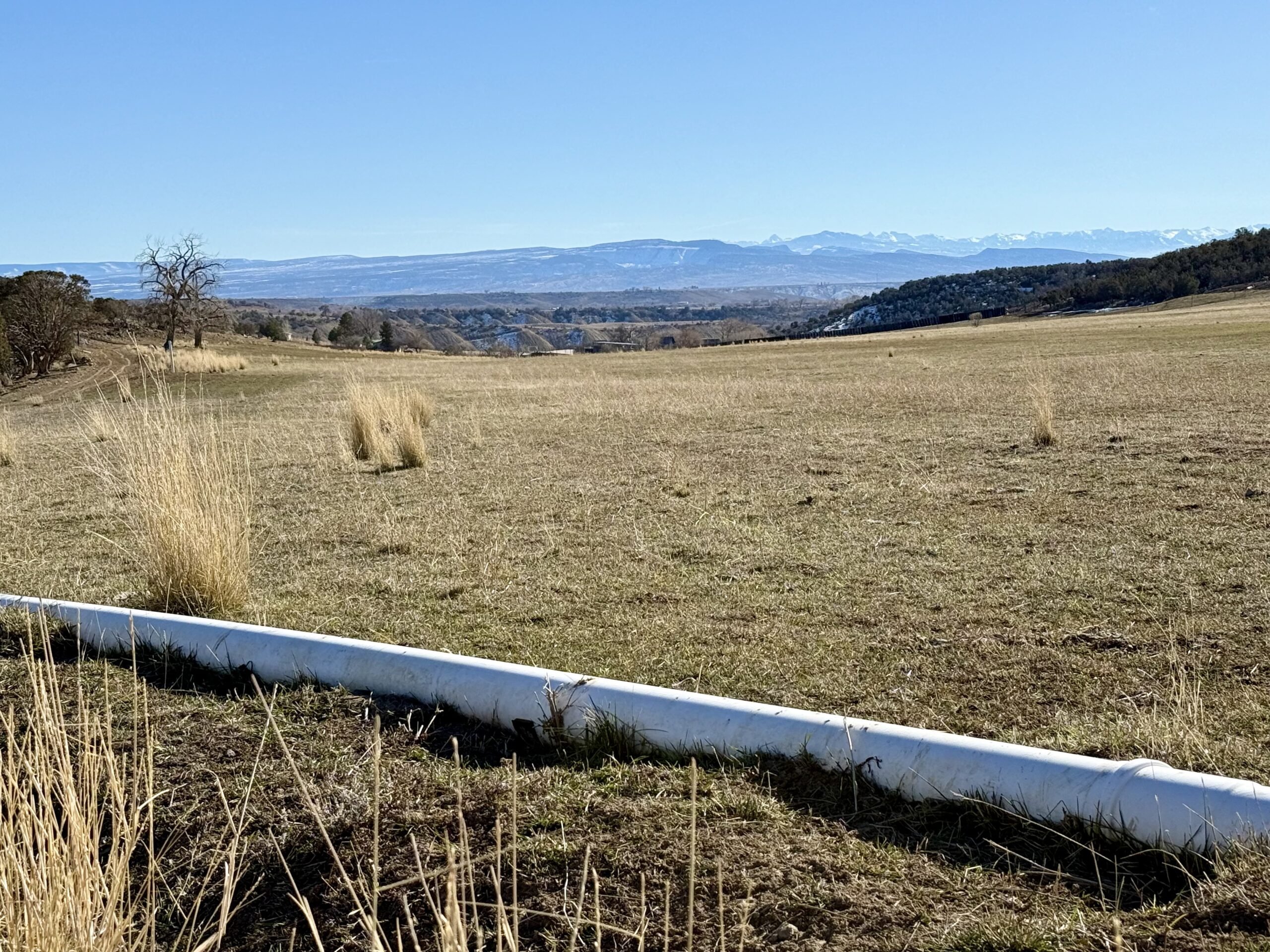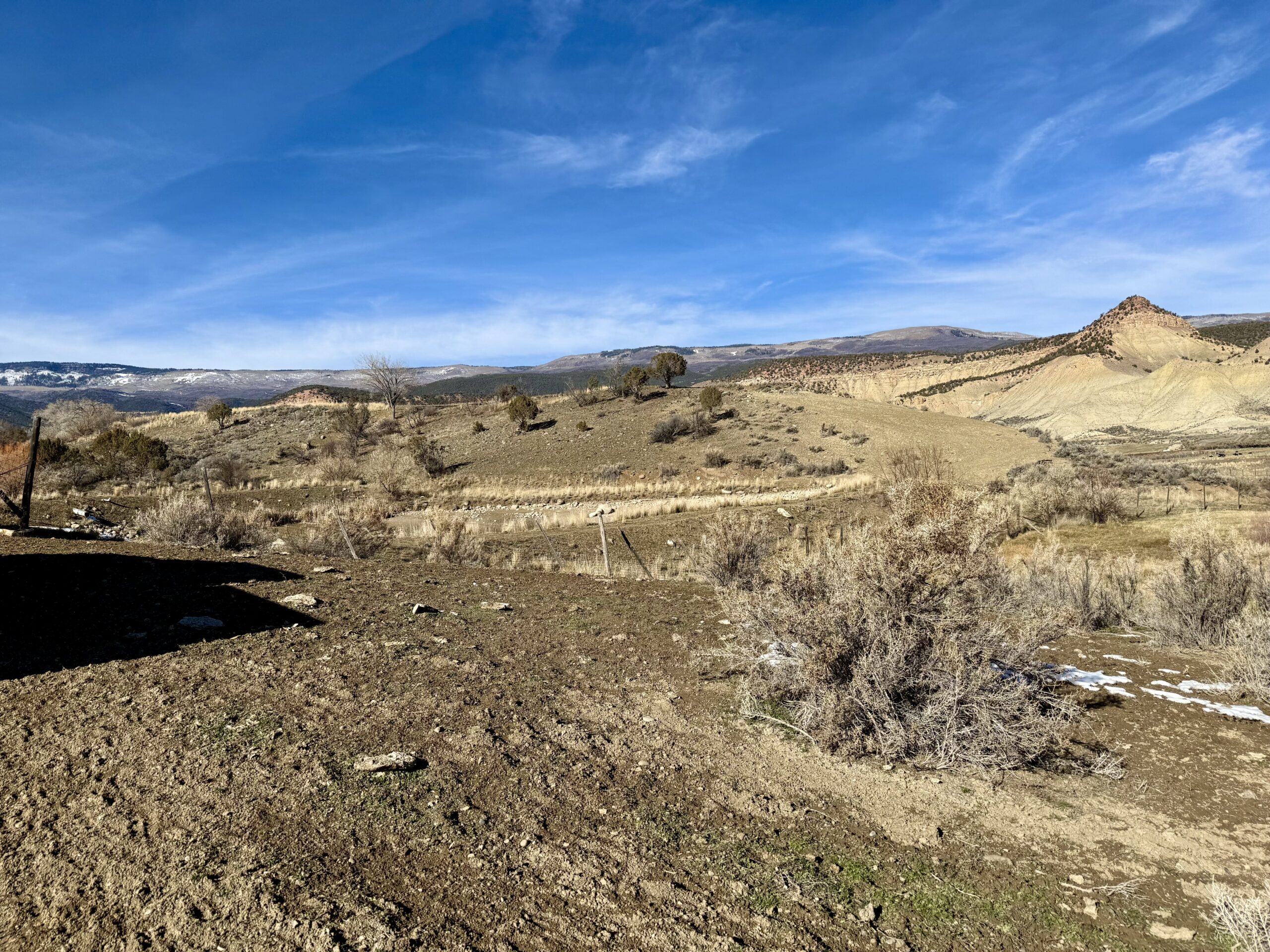 Beautiful 220± acres of diverse terrain with mesa benches, irrigated pastures, dryland grazing, meadows, piñon pine, cedar, cottonwoods, and enjoy Dirty George Creek as it runs through the ranch for ¼ mile or so. Approximately 90± acres are irrigated and currently in pasture.